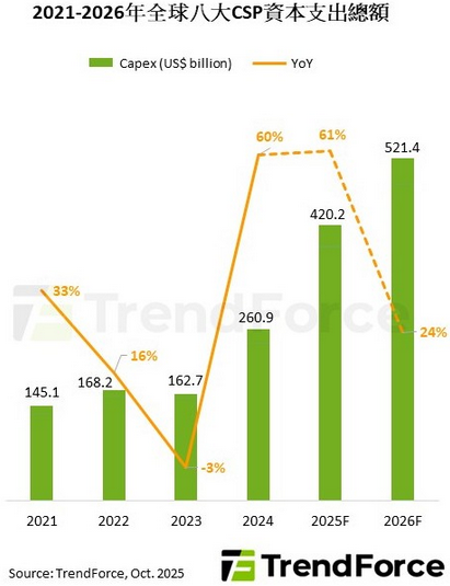 2026年CSP資本支出上看5,200億美元,GPU採購與ASIC研發助續創新高